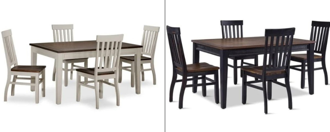 Les lignes franches et les angles droits de la collection Boyd offrent à votre salle à manger une sensibilité moderne tout en étant décontractée qui fera de vos repas des moments simples de la vie. Les lignes gravées le long de la bordure de la table renvoient à sa forme rectangulaire et un contour biseauté ajoute un détail mesuré. Les dossiers lattés des chaises se mélangent avec le recouvrement aspect cuir noir sur les assises pour un choix élégant. L’ensemble de cinq morceaux comprend la table et quatre chaises sans bras, tel que montré.