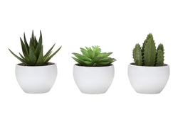- Add a touch of greenery to your home or office with this set of 3 artificial succulent plants that stand up to 6" tall.