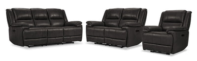 Allie Ens. Sofa, causeuse et fauteuil inclinables électriques à double inclinaison en cuir – granite