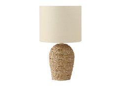 - Refresh your home with this stylish 17" table lamp featuring a natural rattan base and a chic beige fabric shade, perfect for creating a warm and inviting ambiance in your living room, bedroom, or home office.