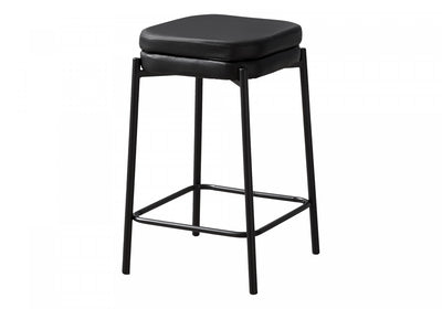 This sleek and stylish set of 2 barstools is perfect for adding a touch of contemporary to your kitchen or entertainment area. These backless stools feature a comfortable padded seat upholstered in a luxurious black leather look fabric that is easy to maintain. The sturdy construction design of the black metal legs with a convenient footrest, these stools are built to last and provide the ultimate support while you relax and unwind. Easy to assemble, with illustrated instructions and all parts includes, these fashionable style bar stools will be ready to start enjoying in no time. They include a 2 year limited warranty against any defects, so you can trust in the quality and durability of these highly functional stools. Pair these with a matching counter height dining table (sold separately) to upgrade your dining area with a touch of sophistication and comfort.Dimensions du produit: Profondeur: 16", Hauteur: 26", Largeur: 16",