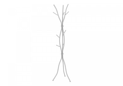 Blending functionality and decorative appeal, this unique freestanding coat rack offers more than just a place to neatly hang jackets. It features a nature-inspired, sculpture-like design resembling gathered tree branches that will stand out in your entryway, hallway, or office. The sturdy hammered metal posts in a silver finish include 8 hooks (excluding the tops of the posts) for hanging coats, scarves, and more. The 3 upper hooks provide space to hang longer items without crowding, while the 5 lower hooks are perfectly positioned for shorter items, like umbrellas, bags, or kids' jackets.Dimensions du produit: Profondeur: 18.5", Hauteur: 74", Largeur: 18.5",