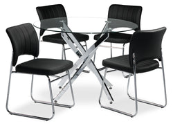 L’ensemble de dînette de la collection Atlantis donne à votre foyer une touche sophistiquée avec son design élégant sans fioritures. Doté d'une taille compacte, parfaite pour les espaces restreints, cet ensemble possède un style moderne avec son fini chrome et noir. Un dessus de table rond en verre repose sur une remarquable base chromée en forme de X, tandis qu'un recouvrement aspect cuir noir offre une assise des plus confortables. Des dossiers courbés, des pattes en métal et des piqûres décoratives verticales font de ces chaises un ajout intelligent à cet ensemble de salle à manger élégant. Assemblage requis par le client.
