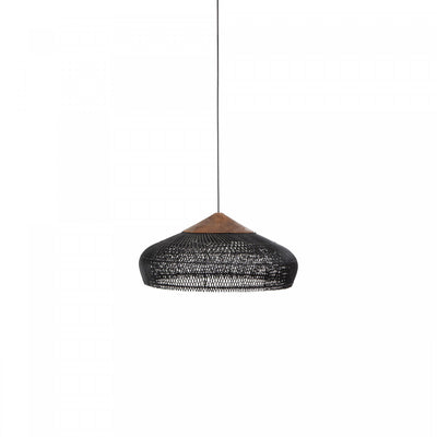 A creative interpretation of classic pendant lighting, this lamp evokes elements of nature and craftmanship. It features a teak top and organically shaped handwoven rattan details along the sides, all crafted with traditional javanese technique. Hang alone, or create a cluster of pendants, mixing various sizes and shapes.Dimensions du produit: Profondeur: 25.75", Hauteur: 12", Largeur: 25.75",