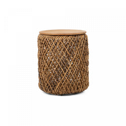 Reclaimed teak, handwoven abaca, reclaimed iron