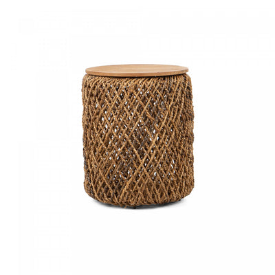 Experience the timeless beauty of traditional Javanese craftsmanship with this unique piece. Made from reclaimed teak, the top preserves the wood's natural tones, while the base showcases generations-old woven rattan techniques, retaining its inherent coloring. Sturdy, stylish, and full of island charm, it’s a perfect addition to any rustic home setting.Dimensions du produit: Profondeur: 15", Hauteur: 18.25", Largeur: 15",