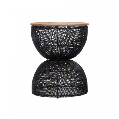 Experience the timeless beauty of traditional javanese craftsmanship with this unique piece. Made from reclaimed teak, the top preserves the wood's natural tones, while the base showcases generations-old woven rattan techniques, retaining its inherent coloring. Sturdy, stylish, and full of island charm, it’s a perfect addition to any rustic home setting.Dimensions du produit: Profondeur: 16.25", Hauteur: 19.5", Largeur: 16.25",