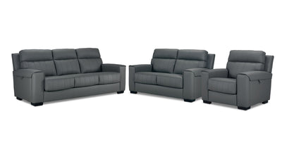 Benevento Ens. Sofa, causeuse et fauteuil en cuir - acier