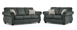 Découvrez le style élégant et rétro de l’ensemble sofa et causeuse Brooklyn. Recouvert d'un tissu moderne en velours côtelé dans un élégant vert sauge, cet ensemble sofa et causeuse ajoutera une touche de style rétro à votre intérieur. Avec ses élégants appui-bras arrondis qui assurent le confort de vos bras et sa bordure de clous à griffes qui rehaussent l'aspect rétro, cet ensemble sofa et causeuse est à la fois superbe et confortable. Les ressorts anti-affaissement en acier de calibre 8 dans l'assise et en acier de calibre 11,5 dans le dossier assurent le soutien. Les coussins d'assise amovibles en mousse d'une densité de 2 lb offrent un confort supplémentaire et facilitent le nettoyage, car les coussins peuvent être tournés. Grâce à sa structure en bois dur et en bois composite, cet ensemble sofa et causeuse garantit sa solidité et sa durabilité pour les années à venir. Pour une touche rétro, quatre coussins décoratifs se mélangent parfaitement à l'esthétique de cet ensemble. Magnifiquement conçu pour compléter tout décor de salle de séjour moderne ou rétro, vous pourrez toujours profiter du confort et de l'esthétique de cet ensemble sofa et causeuse. Fièrement fabriquée au Canada, la collection Brooklyn allie un design classique à un savoir-faire canadien. L’ensemble sofa et causeuse Brooklyn vous permettra de vous détendre, de lire ou de discuter avec vos amis et votre famille.