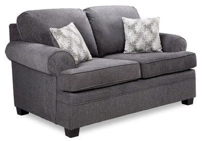 Des appui-bras légèrement arrondis et un subtil passepoil autour des coussins et de la base sont les caractéristiques de cette causeuse contemporaine. Recouvert d'un tissu gris texturé discret, cet article robuste apportera une touche de distinction à votre espace de vie. Les coussins de dossier sont audacieusement incurvés et légèrement inclinés, les coussins d'assise en forme de L à chaque extrémité peuvent être facilement tournés pour un minimum d'usure et les pattes en bloc de couleur chocolat noir ajoutent une touche d'élégance.Dimensions du produit: Profondeur: 40", Hauteur: 40", Largeur: 68.5",