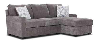 Découvrez le mélange parfait de style, de confort et de durabilité avec le sectionnel de 2 mcx Charlotte avec fauteuil allongé à droite. Conçu pour la vie moderne, ce sectionnel présente une esthétique à la fois intemporelle tout en étant contemporaine, avec de larges sièges couronnés, des dossiers moelleux attachés et des appui-bras plats élégants. La confection impeccable garantit un aspect raffiné qui s'intègre sans effort dans n'importe quel espace. Construit pour une solidité de longue durée, ce sectionnel de 2 mcx est fabriqué à partir de bois dur séché au four et de bois d'ingénierie. Chaque joint est collé, agrafé et renforcé par des blocs d'angle de 6 pouces, créant ainsi une base solide conçue pour résister à l'épreuve du temps. L'assise est soutenue par des ressorts sinueux en acier trempé de calibre 8, avec des coins à double suspension pour une durabilité accrue et un confort supérieur. Idéal pour les ménages occupés, le tissu haute performance offre une protection exceptionnelle contre les taches et les dommages, ce qui facilite l'entretien. Que vous passiez une soirée tranquille ou que vous receviez des invités, cette collection offre l'équilibre parfait entre le style et la fonction. Rehaussez votre intérieur grâce à la qualité de l'artisanat canadien et profitez d'un mobilier conçu pour la vie de tous les jours.Dimensions du produit: Profondeur: 37", Hauteur: 38",