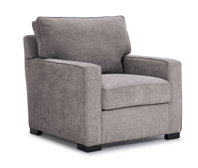 Améliorez votre espace de vie avec le fauteuil Charlotte couleur fumée qui est fièrement fabriqué au Canada. Ce fauteuil est un mélange parfait de durabilité, de style et de confort. Recouvert d'un tissu polyester haute performance, il offre une protection supérieure contre les taches et l'usure quotidienne, ce qui en fait un choix à la fois pratique et élégant pour les familles et les amateurs de divertissement. Sa large assise enveloppante et son dossier attaché et rembourré vous invitent à vous détendre après une longue journée. Fabriquée à partir de bois dur séché au four et de bois d'ingénierie, la structure robuste de ce fauteuil garantit un soutien durable. Chaque joint est collé, agrafé et renforcé par des blocs d'angle de 6 pouces, ce qui lui confère une solidité et une stabilité accrues. Les ressorts sinueux en acier trempé de calibre 8, doublement renforcés dans les coins, garantissent un confort et une résilience constants, permettant au coussin de rester moelleux et confortable pendant des années. Son design épuré et contemporain, mis en valeur par des appui-bras plats sur mesure et des coutures minutieuses, s'intègre sans effort à n'importe quel décor. Que vous vous prélassiez seul ou que vous receviez des amis, ce fauteuil est plus qu'une simple assise: c'est une pièce maîtresse élégante pour la vie de tous les jours. Le fauteuil Charlotte allie confort et savoir-faire dans cet environnement intemporel.Dimensions du produit: Profondeur: 37", Hauteur: 38", Largeur: 36",