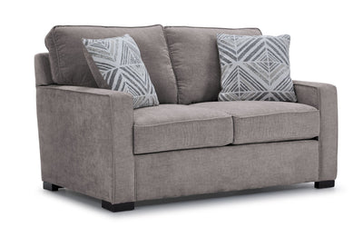 Améliorez votre espace de vie avec la causeuse Charlotte couleur fumée qui est fièrement fabriquée au Canada. Cette causeuse est un mélange parfait de durabilité, de style et de confort. Recouverte d'un tissu polyester haute performance, elle offre une protection supérieure contre les taches et l'usure quotidienne, ce qui en fait un choix à la fois pratique et élégant pour les familles et les amateurs de divertissement. Ses larges assises enveloppantes et ses dossiers attachés et rembourrés vous invitent à vous détendre après une longue journée. Fabriquée à partir de bois dur séché au four et de bois d'ingénierie, la structure robuste de cette causeuse garantit un soutien durable. Chaque joint est collé, agrafé et renforcé par des blocs d'angle de 6 pouces, ce qui lui confère une solidité et une stabilité accrues. Les ressorts sinueux en acier trempé de calibre 8, doublement renforcés dans les coins, garantissent un confort et une résilience constants, permettant aux coussins de rester moelleux et confortables pendant des années. Son design épuré et contemporain, mis en valeur par des appui-bras plats sur mesure et des coutures minutieuses, s'intègre sans effort à n'importe quel décor. Que vous vous prélassiez seul ou que vous receviez des amis, cette causeuse est plus qu'une simple assise: c'est une pièce maîtresse élégante pour la vie de tous les jours. La causeuse Charlotte allie confort et savoir-faire dans cet environnement intemporel.Dimensions du produit: Profondeur: 37", Hauteur: 38", Largeur: 61",