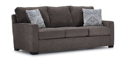 Améliorez votre espace de vie avec le sofa Charlotte couleur étain qui est fièrement fabriqué au Canada. Ce sofa est un mélange parfait de durabilité, de style et de confort. Recouvert d'un tissu polyester haute performance, il offre une protection supérieure contre les taches et l'usure quotidienne, ce qui en fait un choix à la fois pratique et élégant pour les familles et les amateurs de divertissement. Ses larges assises enveloppantes et ses dossiers attachés et rembourrés vous invitent à vous détendre après une longue journée. Fabriquée à partir de bois dur séché au four et de bois d'ingénierie, la structure robuste de ce sofa garantit un soutien durable. Chaque joint est collé, agrafé et renforcé par des blocs d'angle de 6 pouces, ce qui lui confère une solidité et une stabilité accrues. Les ressorts sinueux en acier trempé de calibre 8, doublement renforcés dans les coins, garantissent un confort et une résilience constants, permettant aux coussins de rester moelleux et confortables pendant des années. Son design épuré et contemporain, mis en valeur par des appui-bras plats sur mesure et des coutures minutieuses, s'intègre sans effort à n'importe quel décor. Que vous vous prélassiez seul ou que vous receviez des amis, ce sofa est plus qu'une simple assise: c'est une pièce maîtresse élégante pour la vie de tous les jours. Le sofa Charlotte allie confort et savoir-faire dans cet environnement intemporel.