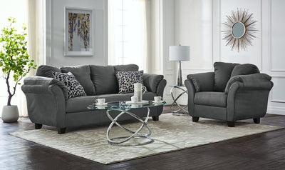 - Les bras bien rembourrés et les pattes en bois en angles rehaussent le style confortable et décontracté.