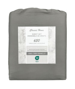 Cotton House Ens. Draps très grand 100% coton peigné – 650 fils au pouce carré gris pâle