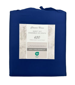 Cotton House Ens. Draps très grand 100% coton peigné – 650 fils au pouce carré marine