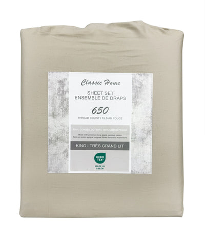 Cotton House Ens. Draps grand 100% coton peigné – 650 fils au pouce carré beige