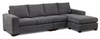 Sur les rails. Lorsque vous voulez garder un style contemporain dans votre salle de séjour, la collection Danielle pour sectionnel est la solution parfaite. Conçue avec de larges bras plats, de pattes en coin en bois de couleur foncée et de grandes assises, la collection Danielle propose un riche et classique tissu de microfibre dans une teinte anthracite qui est facile à entretenir. Des coussins d’assise amovibles et un généreux fauteuil allongé complètent le confort fournit par cette collection. Fabriqué au Canada. Le sectionnel de deux morceaux comprend la causeuse côté gauche et la causeuse avec fauteuil allongé côté droit. Les coussins décoratifs et les accessoires montrés ne sont pas inclus.Dimensions du produit: Profondeur: 36", Hauteur: 33",