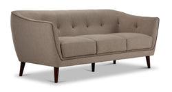 Élégant et confortable, le sofa Daphne propulsera votre espace de vie moderne vers de nouveaux sommets. Avec sa chaleureuse couleur beige, ce sofa se marie facilement avec n'importe quel décor de salle de séjour moderne. Le capitonnage uniforme le long de l'intérieur des appui-bras et du dossier crée un aspect magnifique et personnalisé qui rehausse l'attrait visuel général du sofa tout en contribuant à son confort structuré. Le passepoil continu qui dessine la silhouette accentue les lignes épurées, ajoutant une définition et une touche raffinée et contemporaine à votre espace. Détendez-vous et reposez vos bras sur les appui-bras hauts et incurvés, qui allient style et soutien tout en offrant un point d'appui confortable, idéal pour se détendre, lire ou discuter avec des invités. Les hautes pattes en bois au fini expresso rehaussent le design, offrant un contraste, une hauteur supplémentaire et une meilleure circulation de l'air en dessous, pour une base élégante et fonctionnelle. À la fois moderne tout en étant intemporel, le sofa Daphne apporte confort, élégance et sophistication dans votre foyer – une assise à la fois.