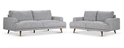 Élégant et raffiné, l’ensemble sofa et causeuse Dianna II apporte un charme moderne du milieu du siècle à votre salle de séjour. Enveloppé d'un doux tissu gris légèrement texturé, cet ensemble sofa et causeuse allie sophistication et confort, ce qui permet de l'associer à n'importe quel décor dans votre foyer. L’élégante silhouette présente des appui-bras légèrement évasés qui ajoutent une forme subtile et un raffinement à l'ensemble du design. Les pattes évasées en bois naturel offrent un contraste chaleureux avec le revêtement gris, tandis que les coussins d'assise surdimensionnés améliorent à la fois le confort et l'esthétique accueillante de ce mobilier. Avec ses lignes épurées et son chaleureux fini, l’ensemble sofa et causeuse Dianna II offre un aspect distinctif associé à une habitabilité quotidienne. Conçu pour la détente, cet ensemble sofa et causeuse est doté de ressorts ensachés qui offrent un soutien ciblé et un confort douillet. Il est parfait pour se prélasser, faire la sieste ou recevoir des invités. Que vous vous blottissiez avec un livre ou que vous receviez des amis, cet ensemble sofa et causeuse s'adapte facilement à votre style de vie. À la fois chic tout en étant accessible, l’ensemble sofa et causeuse Dianna II est un mobilier élégant et indispensable qui apporte confort, polyvalence et une touche moderne à toute salle de séjour.