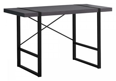 This stylish industrial-inspired computer desk could easily pass for an accent table. It features a spacious, thick-panel desktop finished in a grey laminate and sturdy metal legs in a contrasting black finish. The metallic components are put on full display with rectangular legs integrated into the desktop and an exposed support bar in an attractive x shape on the back of the desk. If you use a living room or bedroom as a home office and are looking for a streamlined alternative to traditional desks, this laptop or writing table gets the job done.Dimensions du produit: Profondeur: 49", Hauteur: 30", Longueur: 36", Largeur: 23.75",