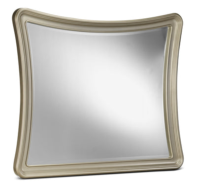 - The gold finish combines with a beveled glass mirror to create a glamorous look for the future star of the house.