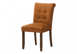 - Set of 2 modern dining chairs with a 38" height, upholstered in chic linen-look orange fabric for a fashionable addition to any dining room or kitchen.