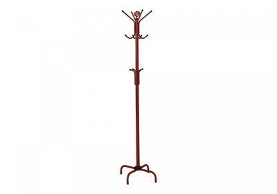 Freely hang your hats, scarves and jackets on this practical coat tree finished in a trendy red metal. Natural and smooth, the coat rack's wide base will help evenly distribute the weight of all your apparel so you don't have to worry about tipping. Ideal in offices, entrances, bedrooms or more, the versatility of this standing coat rack is endless featuring 12 hooks on a double tier format. Your ideal coat rack in small spaces, this model is perfect in the entrance, bedroom or office.Dimensions du produit: Profondeur: 19", Hauteur: 70", Largeur: 19",