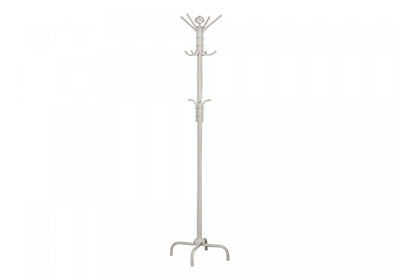 Freely hang your hats, scarves and jackets on this practical coat tree finished in a trendy white metal. Natural and smooth, the coat rack's wide base will help evenly distribute the weight of all your apparel so you don't have to worry about tipping. Ideal in offices, entrances, bedrooms or more, the versatility of this standing coat rack is endless featuring 12 hooks on a double tier format. Your ideal coat rack in small spaces, this model is perfect in the entrance, bedroom or office.Dimensions du produit: Profondeur: 19", Hauteur: 70", Largeur: 19",