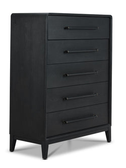 Améliorez le rangement de votre chambre à coucher grâce à l'élégance raffinée de la commode à 5 tiroirs Elure. Fabriquée de manière experte à partir de bois dur d’Asie robuste et de placages d'orme, cet article met en valeur la beauté naturelle des motifs distincts du grain du bois d'orme tout en assurant une résistance durable. Le riche fini grain de poivre ajoute de la profondeur et de la chaleur, ce qui en fait un ajout sophistiqué à n'importe quel espace. Conçue pour être à la fois élégante et fonctionnelle, cette commode offre un vaste espace de rangement grâce à ses cinq tiroirs spacieux. Le tiroir du haut doublé de feutre offre un espace doux et protecteur pour les objets délicats, tandis que le tiroir du bas doublé de cèdre permet de préserver les vêtements et le linge de maison. Chaque tiroir est construit en queue d'aronde et doté de glissières de tiroirs sur roulement à billes pour un fonctionnement fluide et fiable. Les poignées personnalisées ajoutent une touche de charme intemporel, tandis que les bords légèrement incurvés créent une silhouette élégante et moderne. Qu'elle soit associée au mobilier assorti de la même collection ou qu'elle soit utilisée seule, cette commode allie élégance et fonctionnalité, apportant une organisation sans effort et un style contemporain à votre chambre à coucher.