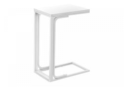 - Bring a modern tone to your living room, office space, family room or bedroom with this stylish white laminate c-shaped side accent table