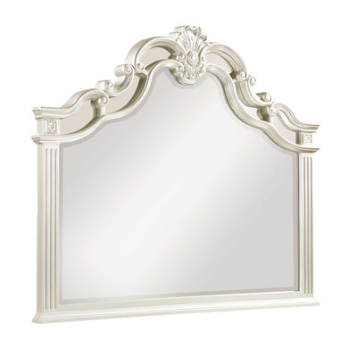 Créez une chambre à coucher de conte de fées avec les accents traditionnels et le style remarquable de la collection Ever. D'élégantes volutes, un verre biseauté, un encadrement de pilastres et de délicates finitions en bois apportent des détails classiques à ce miroir moderne. De plus, les bordures en miroir confèrent à l'ensemble un éclat étincelant supplémentaire. Ni tout à fait argentée, ni tout à fait dorée, le séduisant fini champagne se marie parfaitement à presque toutes les palettes de couleurs et s’agence parfaitement avec le bureau assorti. Il sera difficile de ne pas se sentir comme un membre de la royauté avec l'Ever qui ornera votre chambre à coucher!Dimensions du produit: Profondeur: 2,5", Hauteur: 46", Longueur: 52",