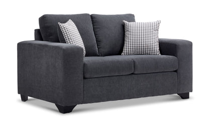 Causeuse résistante. La causeuse Fava en gris offre un espace de détente idéal pour se relaxer. Son design classique et son aspect accueillant en font un choix idéal pour tous ceux qui recherchent le confort dans leur salle de séjour. Le tissu gris de qualité, doux au toucher, est non seulement confortable mais également remarquablement durable, ce qui le rend idéal pour les endroits très fréquentés où le luxe et la résistance sont essentiels. Le tissu gris, avec son aspect texturé subtil, ajoute une couche de sophistication à la causeuse Fava. La qualité tactile du tissu rehausse l'allure de la causeuse, créant un environnement qui respire à la fois le confort et le style. Pour un confort durable, la causeuse Fava est dotée de coussins d’assise en caisson cintrés et de larges bras plats. Les coussins en caisson offrent une sensation de structure et de soutien, garantissant que votre expérience d'assise reste confortable et agréable au fil du temps. Les appui-bras plats audacieux ajoutent non seulement une touche contemporaine au design, mais offrent également un soutien supplémentaire, faisant de la causeuse Fava un mobilier fiable et durable. Un ajout à son charme est l'assurance de la qualité, puisque la causeuse Fava est fièrement fabriquée au Canada.Dimensions du produit: Profondeur: 38", Hauteur: 35", Largeur: 64",