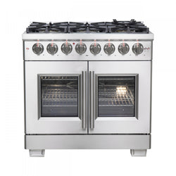 Forno Capriasca 36" Stainless Steel French Door Dual Fuel Range with True Convection (5.36 Cu. Ft.) - FFSGS6387-36