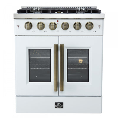 Forno Galiano 30" White French Door Freestanding Gas Range (4.32 Cu. Ft.) - FFSGS6444-30WHT