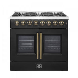 Forno Galiano 36" Black French Door Dual Fuel Range with True Convection (5.36 Cu. Ft.) - FFSGS6356-36BLK