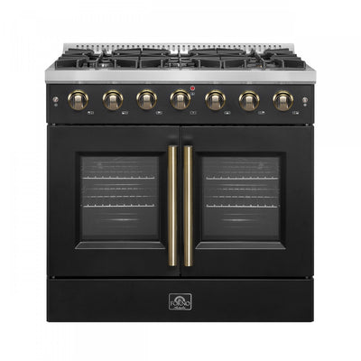 Forno Galiano 36" Black French Door Freestanding Gas Range (5.36 Cu. Ft.) - FFSGS6444-36BLK