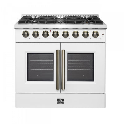 Forno Galiano 36" White French Door Dual Fuel Range with True Convection (5.36 Cu. Ft.) - FFSGS6356-36WHT