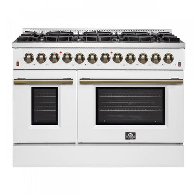 Forno Galiano 48" White Freestanding Dual Fuel Double Oven Range with True Convection (6.58 Cu. Ft.) - FFSGS6156-48WHT
