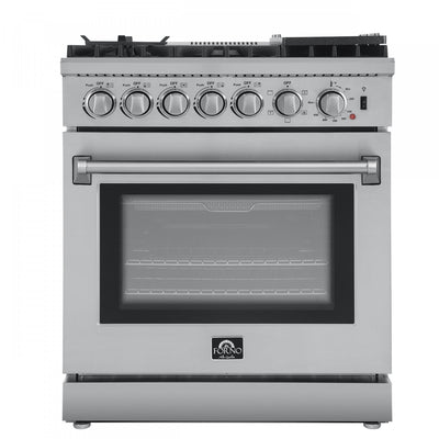 Forno Lazio Stainless Steel Dual Fuel Range with True Convection and Air Fry (4.32 Cu. Ft.) - FFSGS6196-30