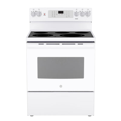 GE Cuisinière électrique 5,0 pi³ autonome à convection avec friture à air sans préchauffage blanc JCB840DVWW
