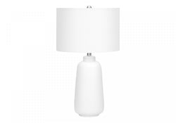 - Illuminate a living room, office or bedroom with this trendsetting, modern 26"h table lamp in a classic tapered cream ceramic base with a subtle texture, topped with a chic ivory linen drum shade and silver finial.