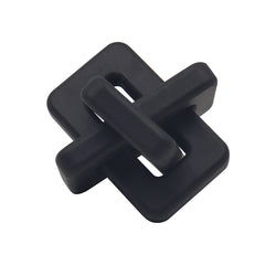 • Un motif abstrait de noeud entrelacé composé de deux boucles de forme carrée. La décoration est une forme unique et continue qui semble être deux pièces séparées entrelacées, créant un sentiment de tension et d'équilibre.