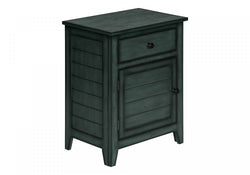 - This 25 inch high transitional style accent table will compliment a casual decor with the coastal inspired antique blue veneer finish, clapboard paneling on the front and sides, and simple black metal knobs.