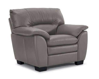 Découvrez le confort offert par le fauteuil en cuir Kendrick. Fabriqué en cuir véritable à 100% sur toute la partie interne de l’assise, il offre une sensation de luxe et une apparence sophistiquée. Sa douce couleur grise en fera un mobilier indispensable dans votre foyer, qui fera tourner les têtes et suscitera les compliments. Doté d'un style contemporain décontracté, ce fauteuil s'intègre parfaitement dans le décor de votre salle de séjour. Les appui-bras rembourrés ajoutent à la sensation de luxe de ce fauteuil, offrant douceur et soutien pour améliorer votre confort et vous permettre de vous détendre. Avec des ressorts qui ne s'affaissent pas et des assises à plateau-coussin, les coussins sont fabriqués avec de la mousse d'une densité de 2,0 lb, offrant un confort supérieur et une durabilité pour les années à venir. La structure extérieure est dotée d'un rembourrage en mousse pour protéger le revêtement et minimiser l'usure, garantissant que ce fauteuil est prêt à affronter toutes les situations. Que vous lisiez un livre, regardiez des films ou discutiez avec des amis, le fauteuil en cuir Kendrick offre la combinaison parfaite de confort et de durabilité.Dimensions du produit: Profondeur: 39", Hauteur: 40", Largeur: 43",
