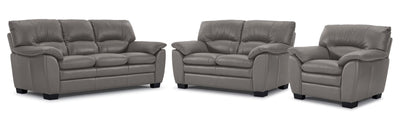 Kendrick Ens. Sofa, causeuse et fauteuil en cuir - gris