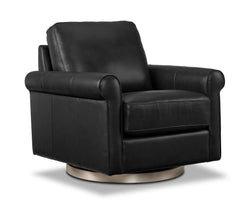 Le fauteuil pivotant en cuir Laguna vous permettra de vous détendre. Ce confortable fauteuil est parfait pour toute demeure moderne-rustique et s'associe parfaitement à une variété de styles de décoration. Le luxueux cuir de fleur corrigé offre un toucher doux et lisse, ainsi qu'une durabilité et un confort de longue durée. En tant que fauteuil en cuir sophistiqué, il est idéal pour une assise au quotidien dans votre salle de séjour ou votre espace de divertissement. Le dossier qui vous soutient et les appui-bras arrondis classiques vous permettent de vous installer confortablement à votre guise, tandis que le fauteuil pivotant ajoute un charme intemporel et une fonctionnalité de tous les jours. Les coussins amovible de l'assise et du dossier facilitent l'entretien et donnent un aspect décontracté et relaxant, pour que vous soyez toujours assis avec style. Une base pivotante harmonieuse associée à un design ergonomique offre un confort et une flexibilité exceptionnels, vous permettant de bouger librement dans n'importe quelle direction lorsque vous discutez avec des invités ou que vous vous détendez. Fabriqué au Canada avec du bois nord-américain issu du développement durable, ce fauteuil pivotant offre une durabilité fiable et une solidité à long terme. Les matériaux naturels ajoutent une base magnifique à votre salle de séjour ou à votre pièce de détente, pour que vous puissiez vous sentir bien dans votre confort et dans votre impact. Le fauteuil pivotant en cuir Laguna est un fauteuil en cuir élégant et accueillant qui apporte une touche traditionnelle à tout intérieur.