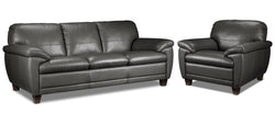Leonardo Ens. sofa et fauteuil en cuir - gris