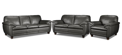 Leonardo Ens. sofa, causeuse et fauteuil en cuir - gris